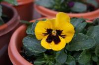 鉢で育てているパンジーや、サクラソウ、シレネなどの花は、寒さの中でもしっかりと葉を広げ、花を咲かせているものもあります。